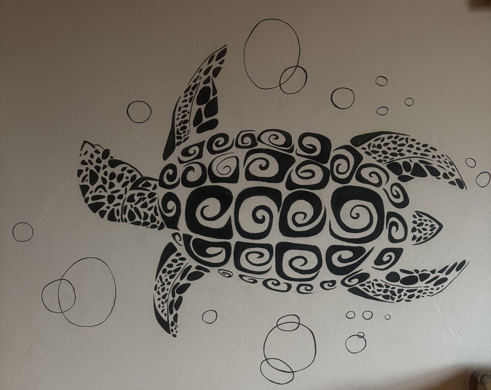 This is a maori turtle which I painted on wall for many years ago. If you want this or similar pattern please contact me.