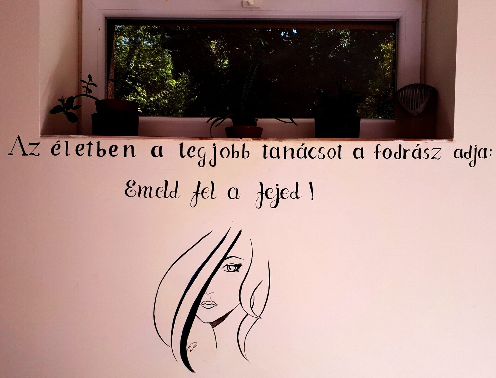 I made this wallpaint for a hairdresser. “The best advice in your life comes from your hairdresser: Raise your head!”